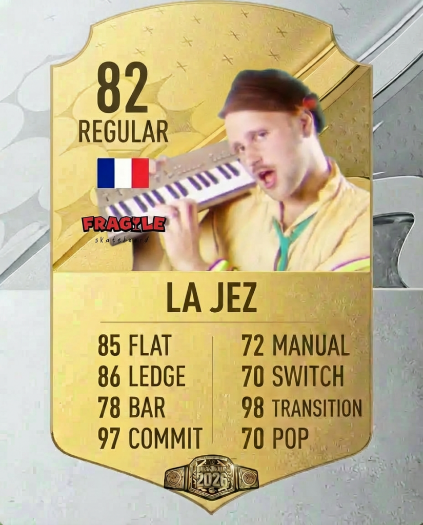 Les statistiques suivantes : flat, ledge, bar, commit, manual, switch, transition et pop ont été calculées à partir du nombre de tricks réalisés dans leurs parts respectives Fragile Days et Fragile 3000.